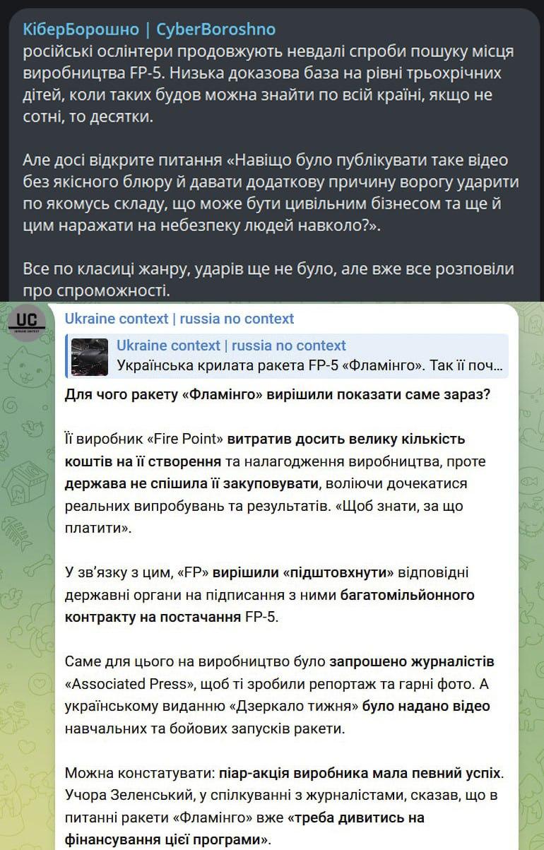 При цьому в українських телеграм-каналах пишуть, що запросити журналістів на виробництво та опублікувати ці кадри вирішила сама компанія-виробник з метою самореклами, оскільки держава не поспішала замовляти ракети. У зв'язку із цим "компанія і вирішила підштовхнути державні органи на підписання з нею багатомільйонного контракту на постачання ракет". Для цього зробили фото ракети, які також дали ЗМІ відео її запуску.