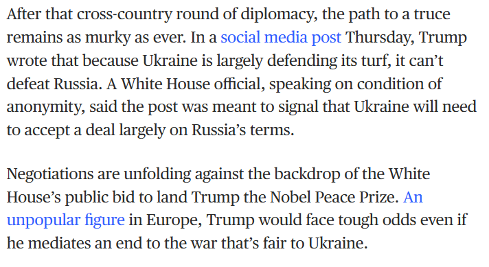 13:54 Ще одне американське видання пише, що нещодавня посада Трампа про те, що Україна, не атакуючи Росію, перемогти у війні не може, є сигналом про те, що Україні доведеться ухвалити угоду здебільшого на умовах Росії.