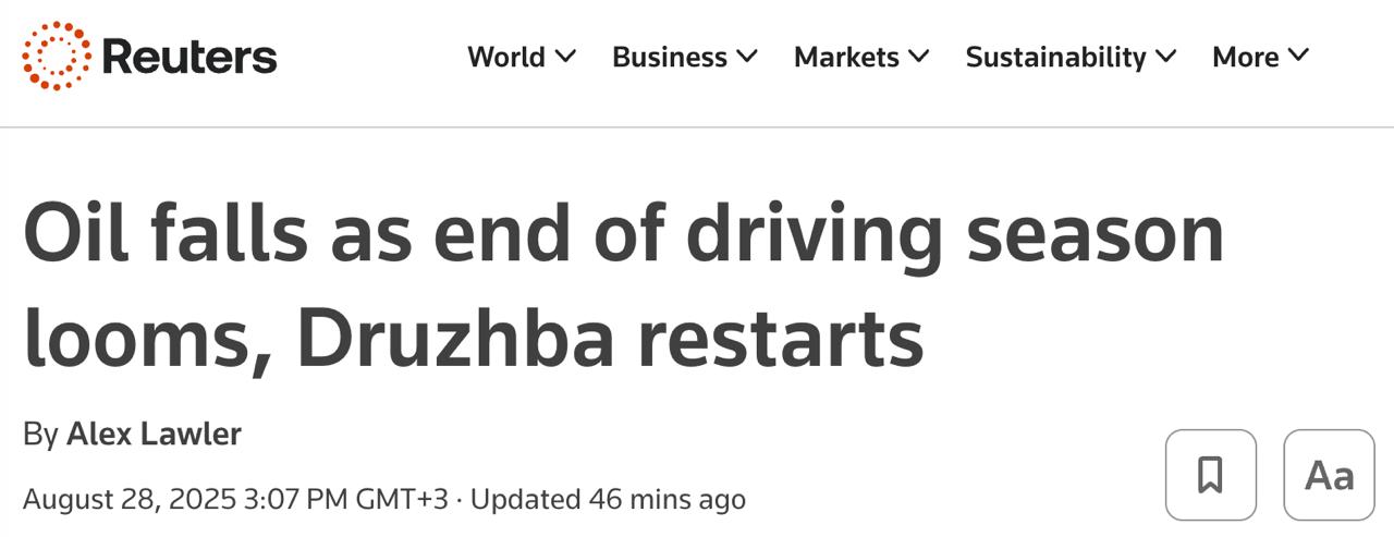 В Угорщину вже відновилися постачання російської нафти трубопроводом "Дружба", який був пошкоджений українським ударом у ніч на 18 серпня.