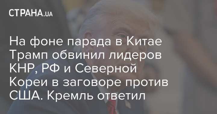 Президент США Дональд Трамп на тлі військового параду в Китаї, який приймали лідери КНР, РФ та КНДР Сі Цзіньпін, Володимир Путін та Кім Чен Ин, звинуватив їх у "змові" проти США.