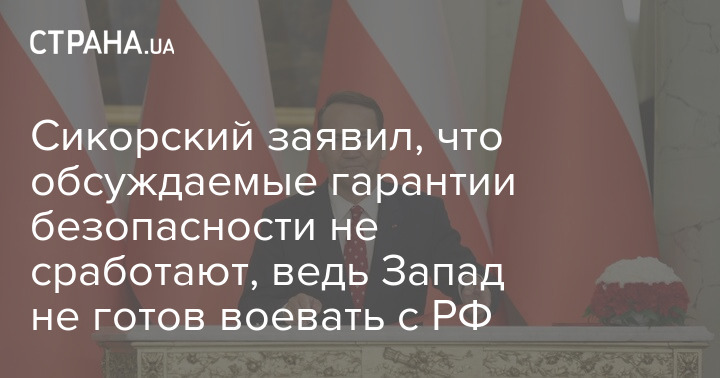 Сікорський заявив, що гарантії безпеки, що обговорюються, не спрацюють, адже Захід не готовий воювати з РФ