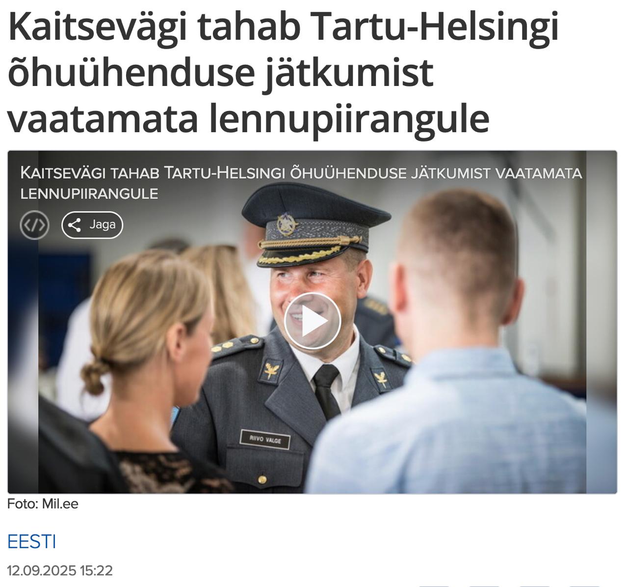 За інформацією видання, вже було скасовано рейс Тарту-Гельсінкі.