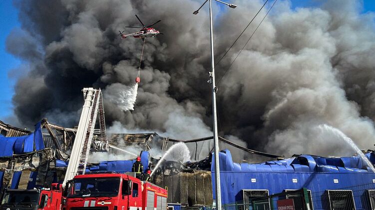 "Епіцентр", що горить під Києвом після удару "Шахеда"