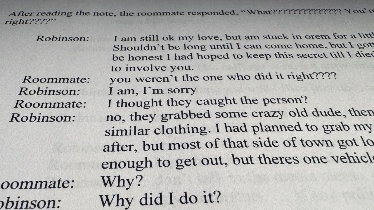 [Коли співмешканець подивився під клавіатуру, там нібито була записка зі словами: "У мене була можливість усунути Чарлі Кірка, і я збираюся це зробити."]