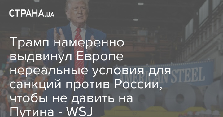 Трамп навмисно висунув Європі нереальні умови для санкцій проти Росії, щоб не тиснути на Путіна - WSJ