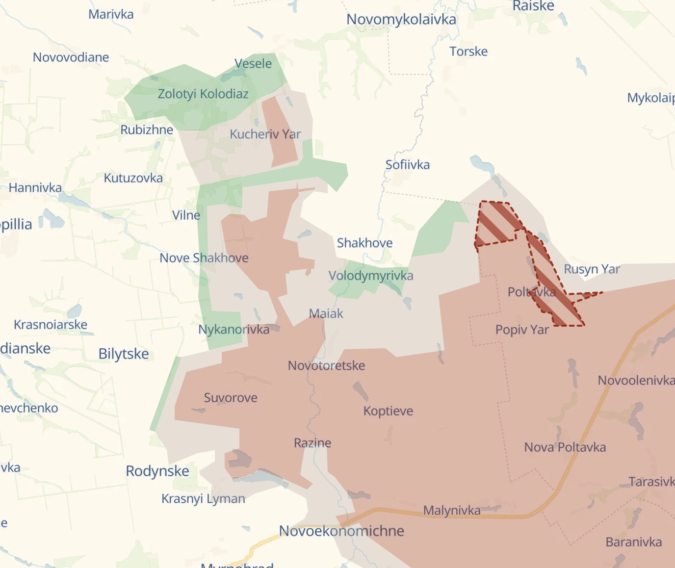 Армія РФ захопила Полтавку на Костянтинівському напрямку, повідомив військовий паблік Deep State.