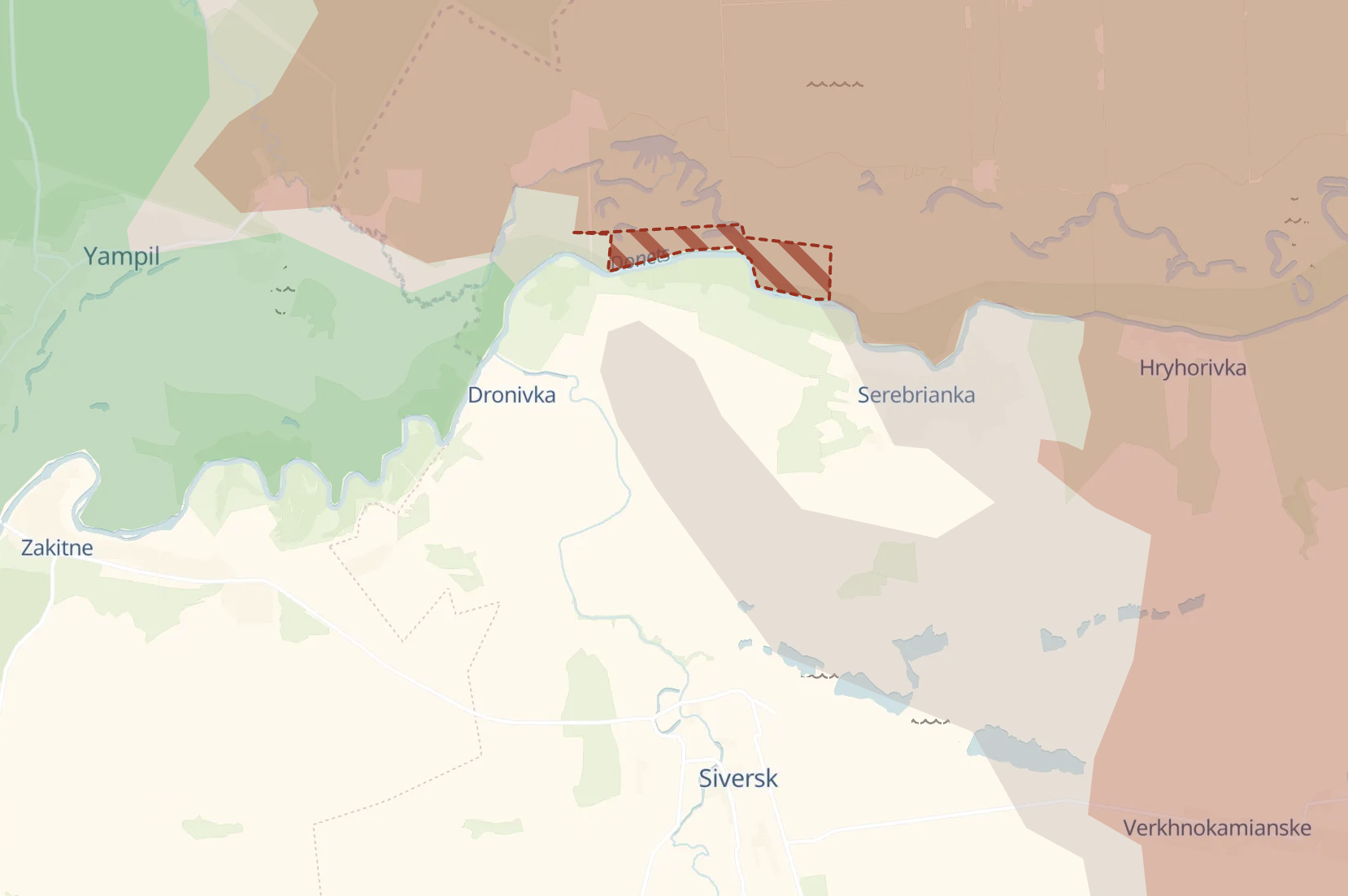 "Противник продовжує тиснути на ділянці від Серебрянки до Виїмки з метою окупувати всю Сіверську агломерацію і саме місто. У цьому районі одна з тих зон, де тягнеться велика сіра зона, яка відображає характер боїв. Ворог має можливість просочуватися через позиції українських бійців, що обумовлено проблемою нестачі особового складу для покриття.