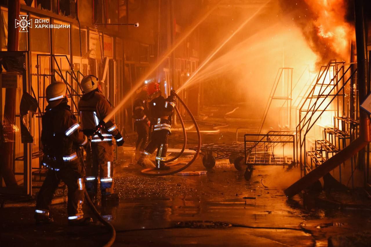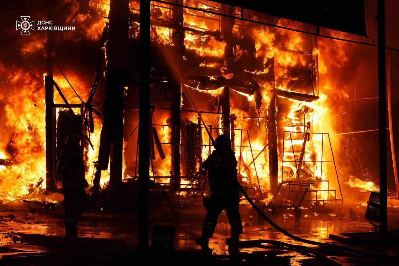 7.45 У Харкові вночі авіабомби потрапили по торговим рядам "Барабашово", житловому будинку та гаражам, повідомляє ДСНС.
