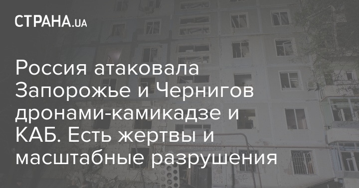 Росія атакувала Запоріжжя та Чернігів дронами-камікадзе та КАБ. Є жертви та масштабні руйнування