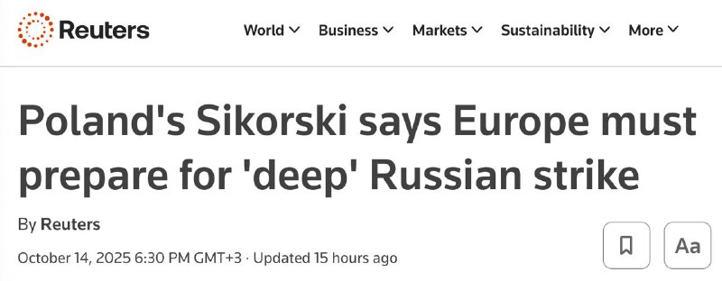 Також міністр попередив, що Європа має бути готовою до російського удару вглиб регіону, назвавши безвідповідальною відмову створювати оборонні споруди, такі як стіна безпілотників на східному фланзі. Сікорський закликав європейські країни "продовжувати підтримувати Україну" та висловив сподівання, що президент США Дональд Трамп надасть країні далекобійні ракети "Томагавк" для посилення ударів по російській інфраструктурі.