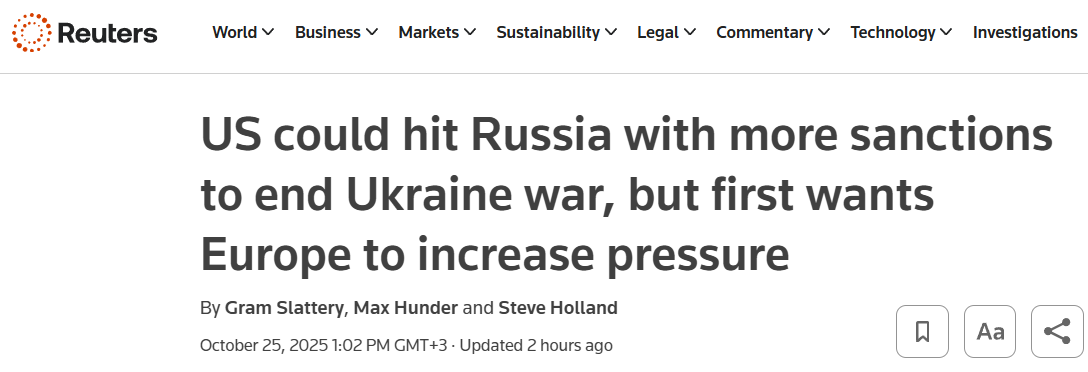 Президент США Дональд Трамп, ймовірно, вичекає кілька тижнів, щоб спостерігати за реакцією Росії на ті обмежувальні заходи, які були введені в середу, 22 жовтня, вважає джерело агентства. За його словами, президент готовий схвалити запровадження санкцій, але навряд чи зробить це у жовтні.