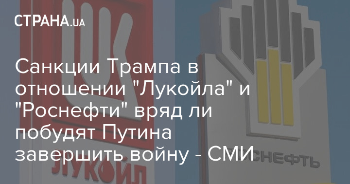 Санкції Трампа щодо "Лукойлу" та "Роснафти" навряд чи спонукають Путіна завершити війну - ЗМІ