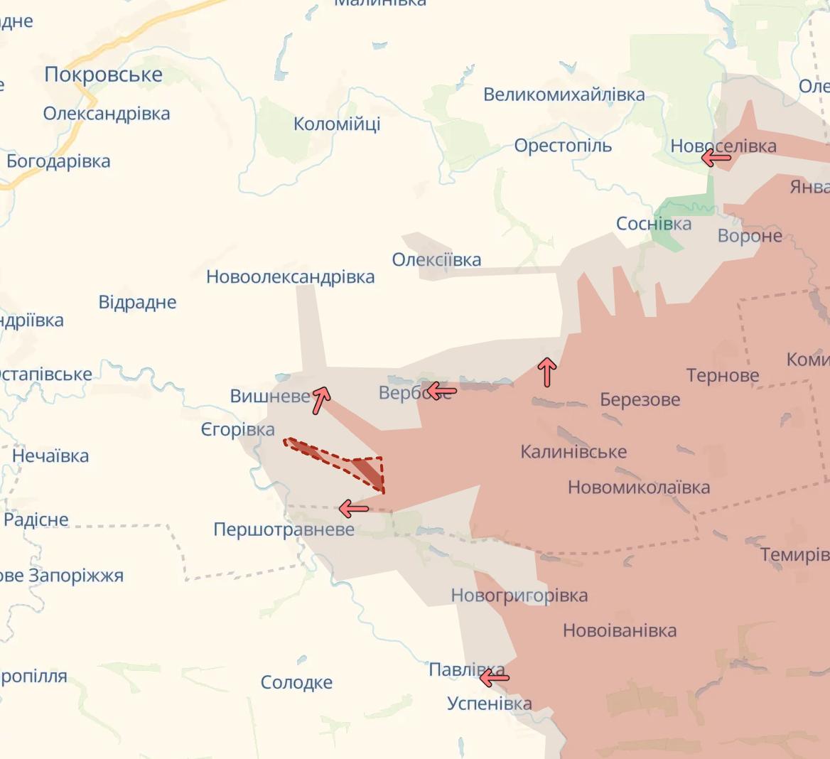 Також росіяни просунулися на Дніпропетровщині у напрямку Єгорівки, повідомляє Deep State.