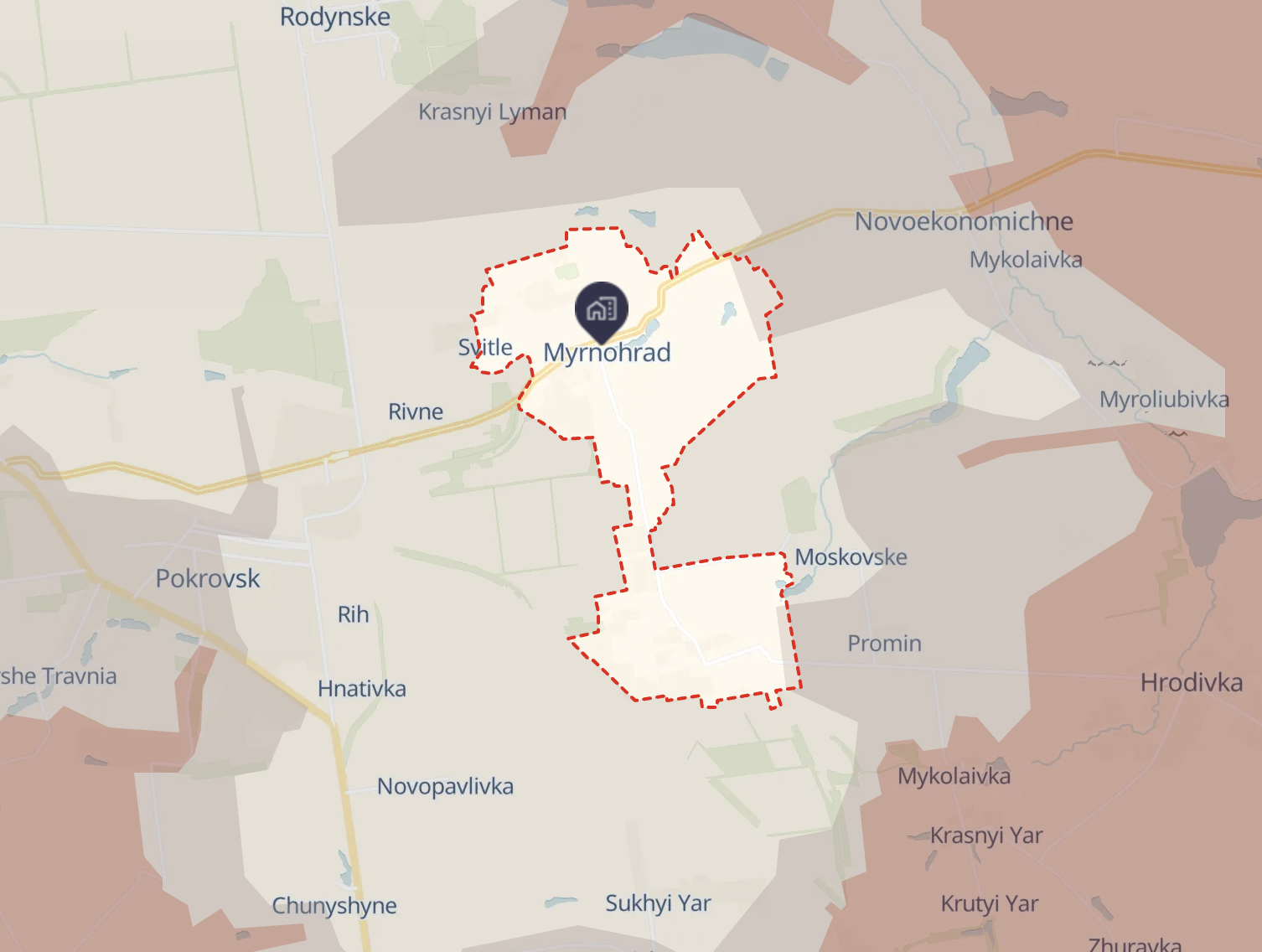 Росіяни також просунулися на південь і північний схід від Покровська, обминаючи Мирноград. Відстань між сірою зоною навколо агломерації тепер менше 3 км.