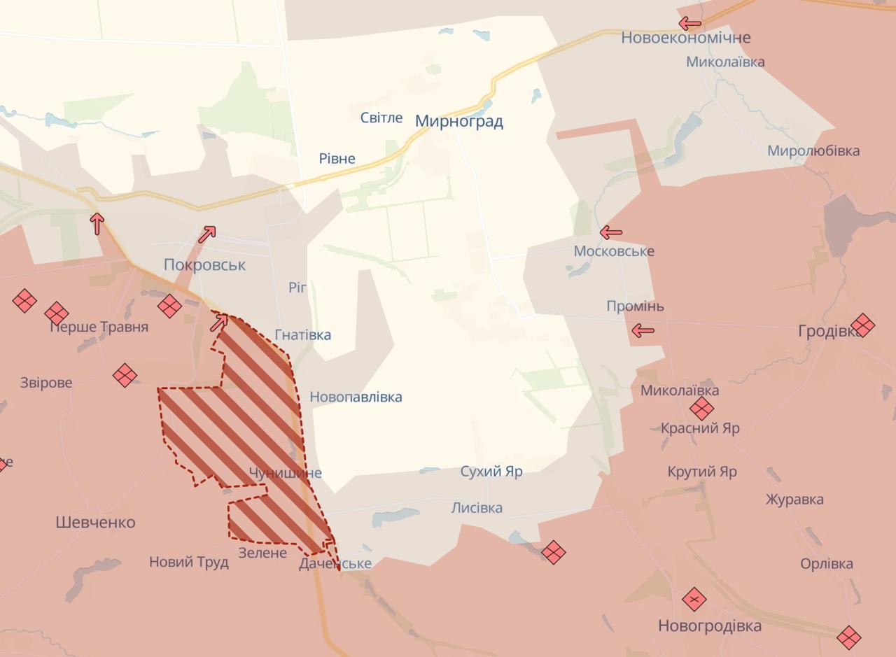 13.05 Армія РФ знову суттєво просунулась на гуляйпільському напрямку Запорізької області, захопивши Нове та Новоуспенівське, повідомляє Deep State.