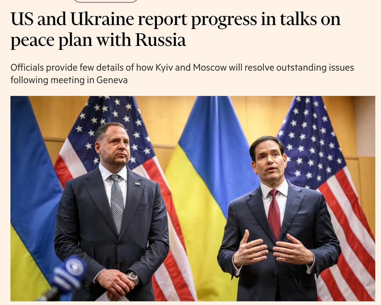 У спільній заяві за підсумками переговорів у Женеві представників Києва та Вашингтона згадується про погодження оновленого рамкового документа, але крапку у ньому мають поставити Трамп та Зеленський. При цьому українські ЗМІ пишуть, що в Женеві не вдалося домовитися з приводу відходу ЗСУ з Донбасу та відмови України від вступу до НАТО і що ці питання планують обговорити під час особистої зустрічі Трампа та Зеленського.