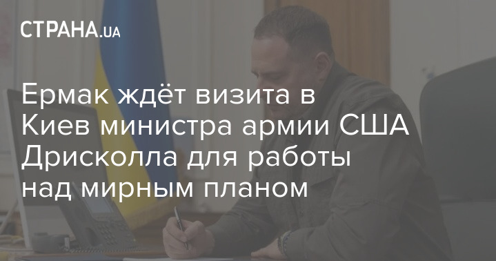 Єрмак чекає візиту до Києва міністра армії США Дріскола для роботи над мирним планом