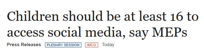 Щоб допомогти батькам керувати цифровою присутністю своїх дітей та забезпечити відповідну вікові участь в Інтернеті, парламент пропонує встановити єдиний мінімальний вік у ЄС – 16 років – для доступу до соціальних мереж, платформ обміну відео та помічників на основі штучного інтелекту, при цьому підліткам у віці від 13 до 16 років.
