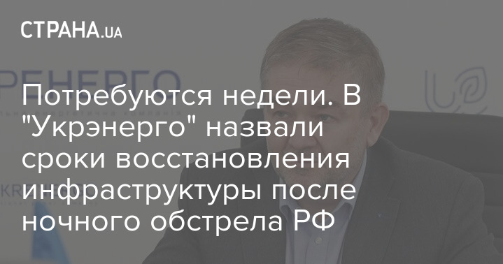 Усунення наслідків сьогоднішнього удару РФ по енергосистемі України триватиме за тиждень.