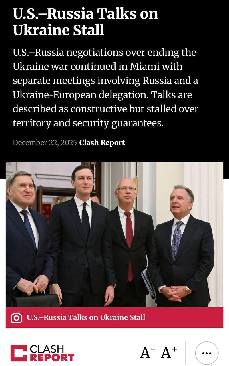 За даними Clash Report, найближчим часом тристоронній формат за участю США, Росії та України не планується, а американські офіційні особи наголосили, що Росія має вирішити проблеми безпеки України, перш ніж розпочнуться ширші переговори.