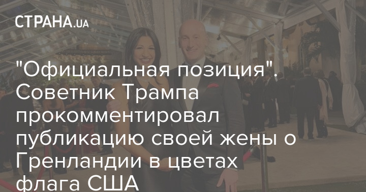 "Офіційна позиція". Радник Трампа прокоментував публікацію своєї дружини про Гренландію у кольорах прапору США
