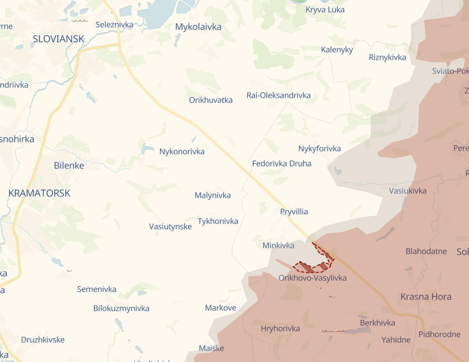 Росіяни просунулися на фронті у напрямку Слов'янська. Зокрема - біля траси з Бахмута на Слов'янськ у Оріхово-Василівці та Васюківці, повідомляє Deep State.