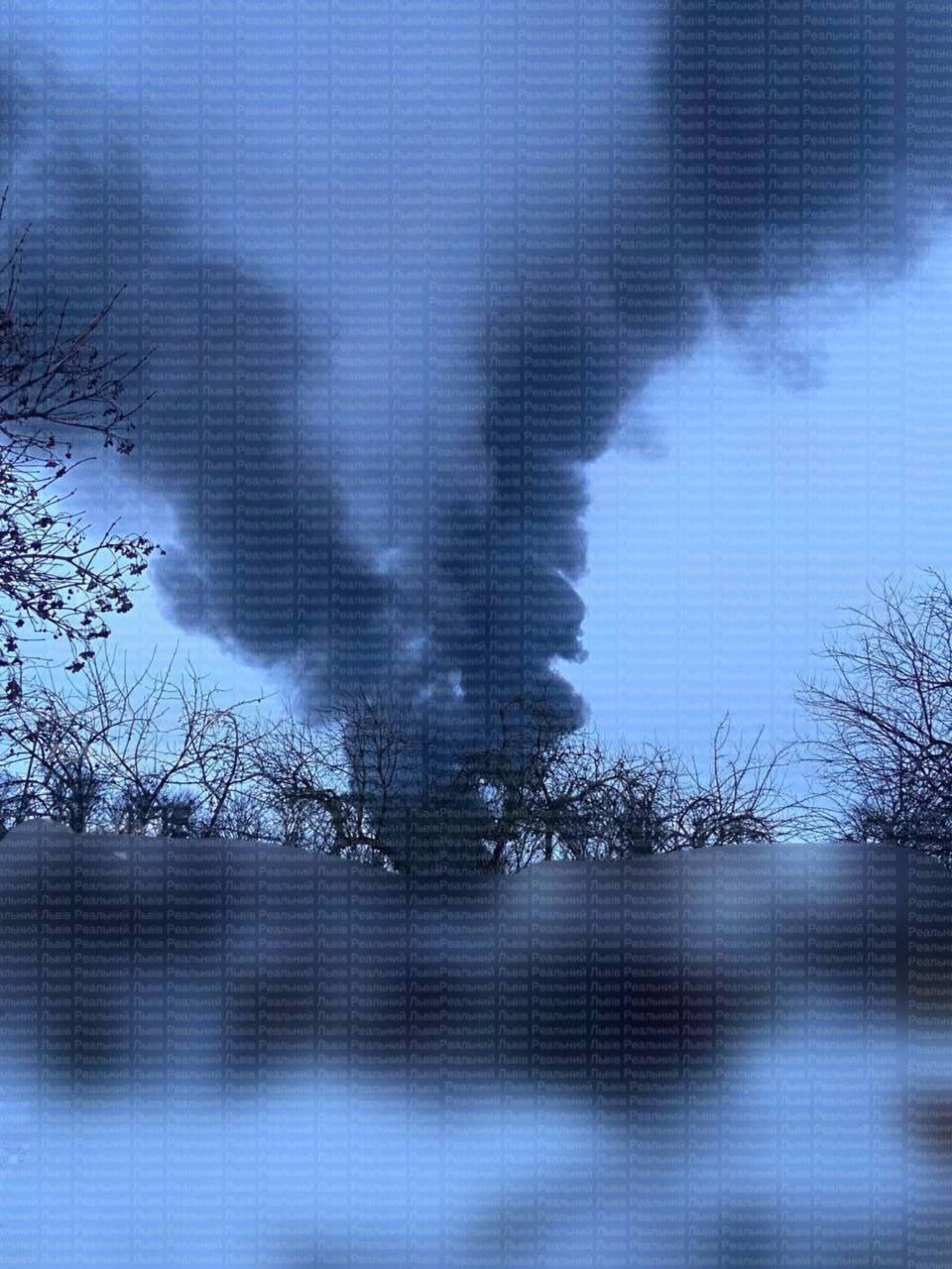 9.00 Чорний стовп диму у Бродах Львівської області після ранкового удару по об'єкту інфраструктури.