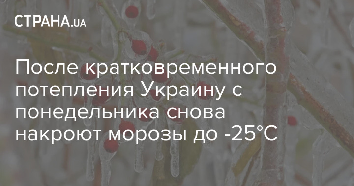 Слідом за потеплінням найближчими днями вже з понеділка в Україну знову прийдуть сильні морози. Стовпчики термометрів опустяться до -25 градусів.