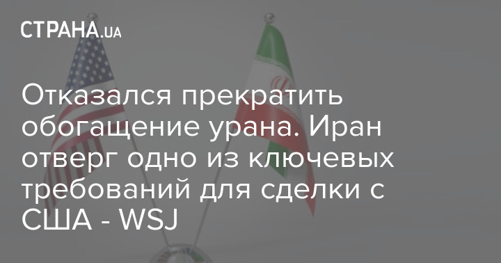 Відмовився припинити збагачення урану. Іран відкинув одну з ключових вимог для угоди зі США - WSJ
