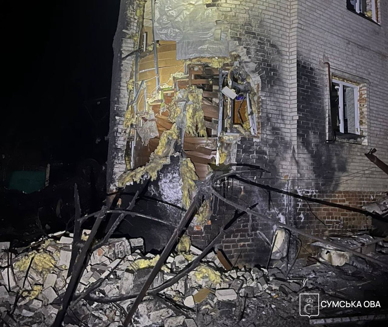 Сьогодні близько 4 години ранку російські війська завдали удару авіаційною бомбою, що коригується, по одному з приватних секторів міста Суми.