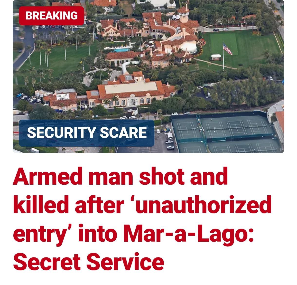 Охорона президента США Дональда Трампа застрелила озброєного чоловіка, який намагався поринути у резиденцію Мар-а-Лаго у Флориді, де знаходиться маєток американського лідера.